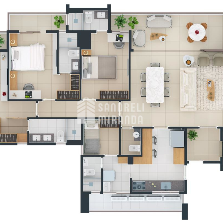 🌿 Varanda privativa em 2 suítes